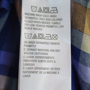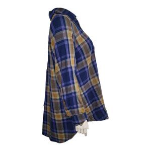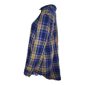 Logo by Lori Goldstein Shirt Womens Size L Large Blue Plaid Lace Detail Button