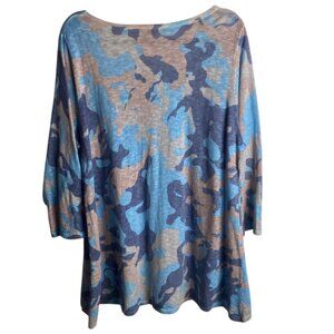 Logo by Lori Goldstein Size L Blue Camouflage Lightweight Sweater Linen Casual