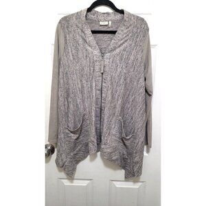 Logo by Lori Goldstein Women's Heather Gray Faux Suede Sleeve Cardigan Asymmetri