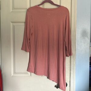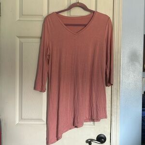 Logo by Lori Goldstein blush asymmetric hem 3/4 sleeve v neck top size medium