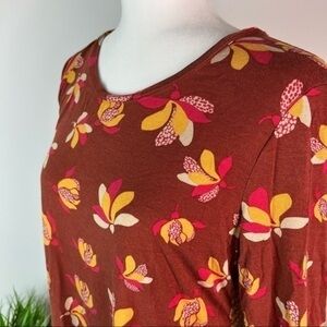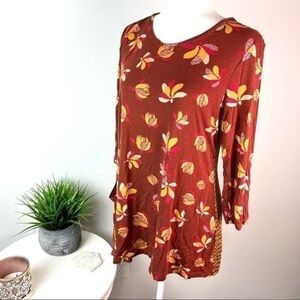 Logo by Lori Goldstein womens maroon and flower asymmetrical tunic size medium