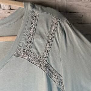 Logo v-neck tunic Tee-shirt lace detail light teal packets bohemian in excellent condition