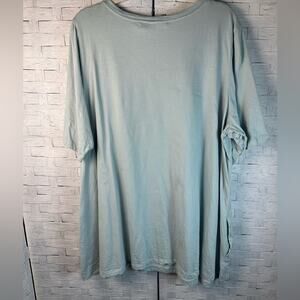 Logo v-neck tunic Tee-shirt lace detail light teal packets bohemian plus size