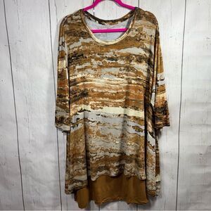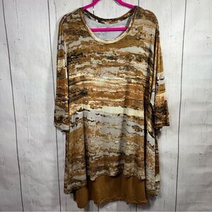 Logo By Lori Goldstein Artsy Abstract 3/4 Sleeve Asymmetrical Stretchy Tunic Top