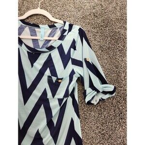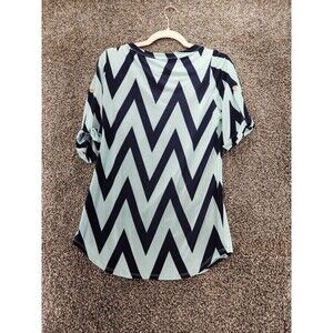 Loila Large Blue Chevron Short Sleeve Blouse.