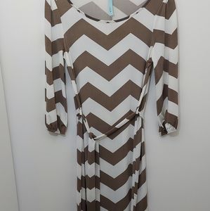 Loila Midi Dress Women's Small Chevron Pattern Brown and White Approx Tie