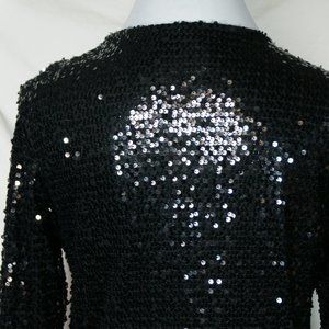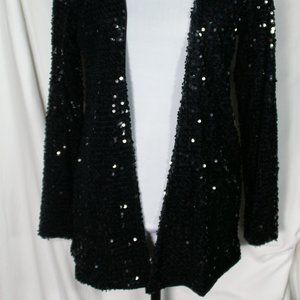 Loila Sequin Covered Open Front Cardigan Women's Small Lined Long Sleeve Evening