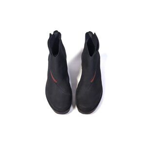 Up for sale is are a pair of very comfortable low wedge boots. Ecologically made with nubuck leather and a lugged heel and side zipper.