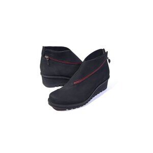 'Lightning' Black Low Wedge Bootie Nubuck