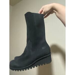 Loints of Holland LNTS Langerak Tall Wedge Boot 38/ US 7.5 Black Nubuck Leather