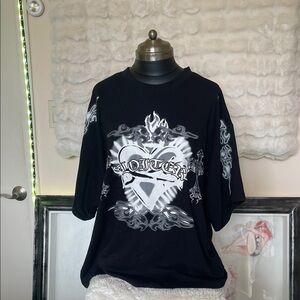 Loiter heart shape biker like top Stylish black t-shirt featuring a bold white graphic design. Perfect for casual wear.