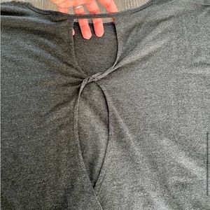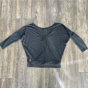 3/4 sleeves. Loose fit throughout. Fitted bottom. Keyhole design on back. Looks super cute over black or bright colored sports bra.