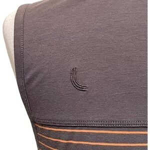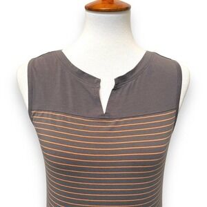 🍀 Lolë Gray Orange Striped Stretch Sleeveless Fit And Flare Dress Size S