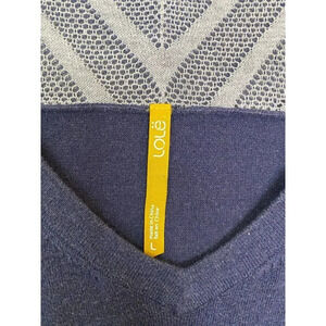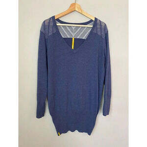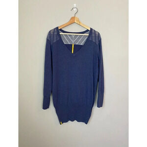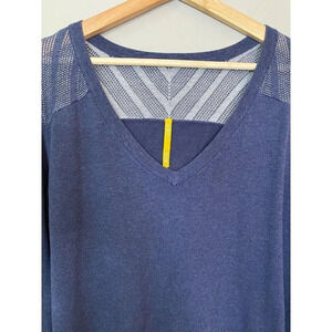 Lolë Women's Size Large Long Sleeve Mesh Knit V-Neck Pullover Activewear in Navy