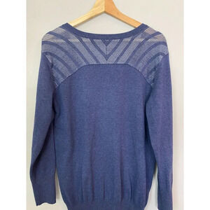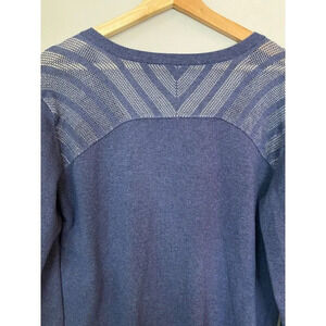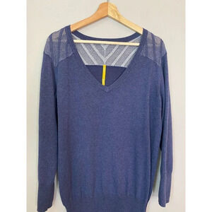 Lolë Lole Womens Sz Large Long Sleeve Mesh Knit V-Neck Navy Pullover Activewear