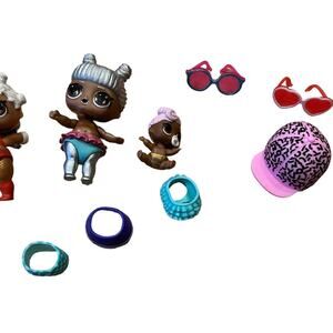 Lol Surprise MGA Lot Of 3 Dolls, 13 Accessories & Clothes Purses Hat Sunglasses