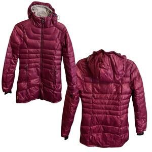 Lolë Women's Hooded Down Puffer Coat - XS (2-4) - Red Burgundy Full Zip Fitted
