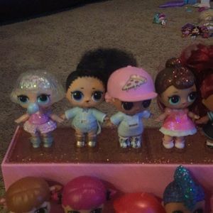 Lol dolls collection 25 big sis, 10 pets, 5 babies, 4 purses, a storage platform with drawers and a bank backpack. All in Mint condition. Will separate if needed 😋