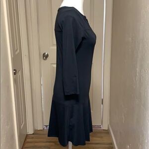 Color is dark gray. Very comfortable and soft shirt fabric. 3/4 sleeves. Straight dress and cut below hips with 1/2 and slightly flared skirt. Have never been worn. Condition is like new without tags.