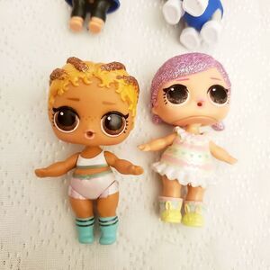 L.O.L. Surprise Doll Lot of 3 dolls and one dog doll. One doll has a braid chipped a little. picture didn't pick it up to well. Pre-owned in good condition. Please refer to pictures for best description and condition verification.