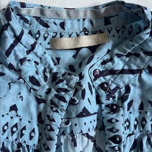 Lola Australia Blue Print Cotton Dress with Braided Belt, Size Medium