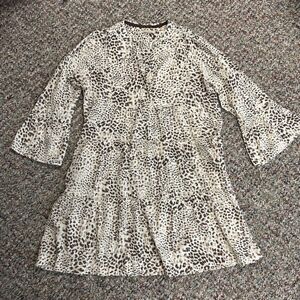 Lola Australia Ivory Brown Leopard Print V-Neck 3/4 Sleeve Tiered Dress Size M