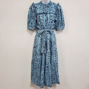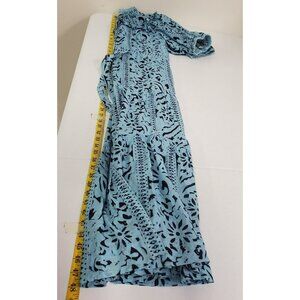 Lola Australia Womens Ruffled Midi Dress Size XS Blue Tropical Beach Peasant