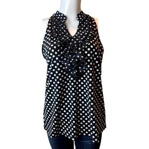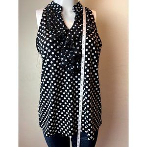 Lola B. Women Polka Dot Sleeveless Blouse Top Ruffle V Neck White Black Size M