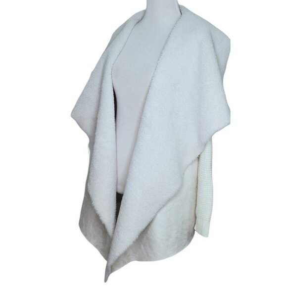 Lola B Womens Cardigan Size Large Draped Faux Cream Suede Soft Shell Long Sleeve
