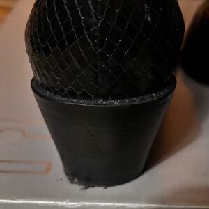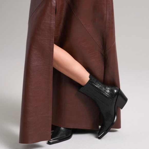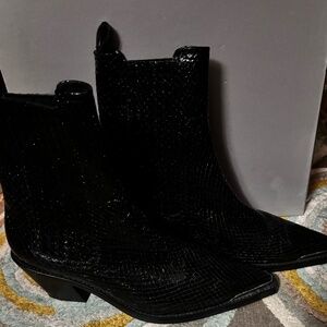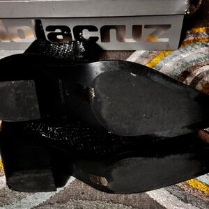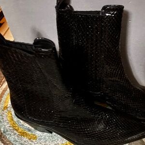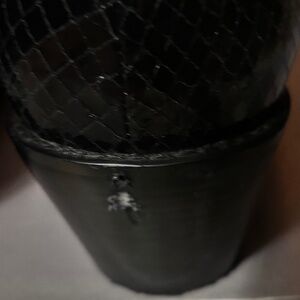 Pill on black crinkle leather boots