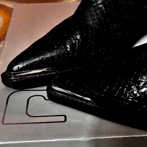 Lola Cruz Aurel Ankle Boots Black Sz 41 Pull On Pointed Toe with Silver Details