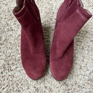 Lola Cruz Burgendy Chunky Heel Suede Ankle Bootie size 40/9.5
