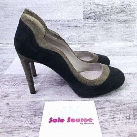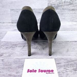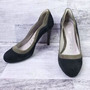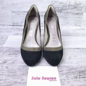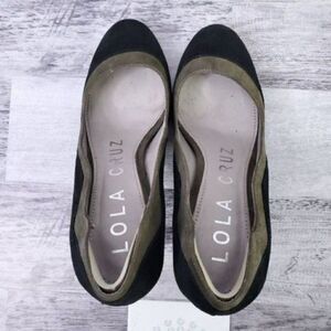 Lola Cruz Two Tone Round Toe Suede Pump Black Green sz 37 Women's sz 7