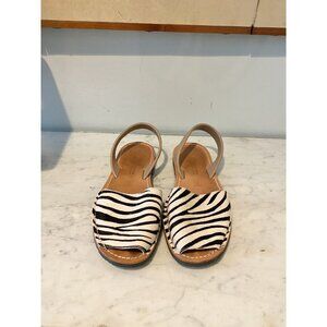 Lola De Menorca Shoes Womens Size 40 Zebra Print Leather Slingback Spain Sandals