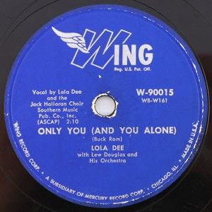 Lola Dee, Paper Roses / Only You (And You Alone) 1955 10" 78 rpm Record W-90015