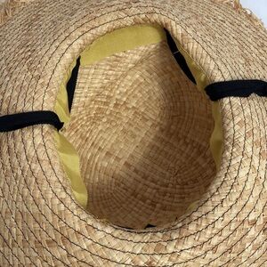 Made from a double layer of ultra-flexible woven raffia, the Alpargatas has a bucket crown that sits slightly higher on the head than a conventionally fitting hat. The brim is entirely top-stitched and has a fringed edge. A long grosgrain ribbon is threaded through eyelets to serve as a chin tie. Knot it under the left ear for a chic touch, or just let the hat hang nonchalantly down the back. The hat provides excellent UV protection.
