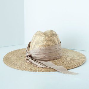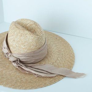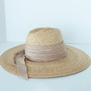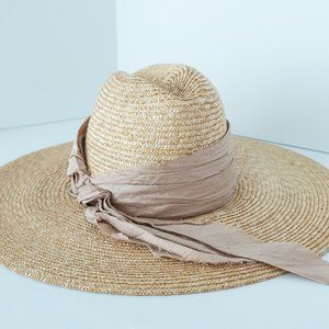 This statement straw hat is as beautiful as it is functional. The hat is handmade – stretched, steamed, pressed and stitched - in the designer's Brooklyn studio.