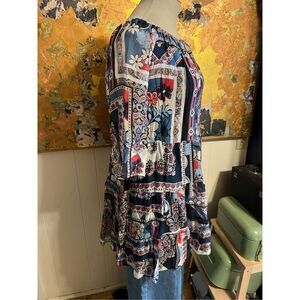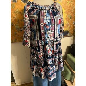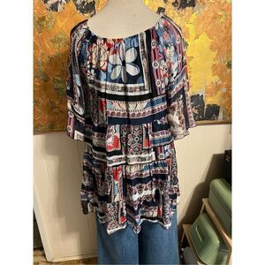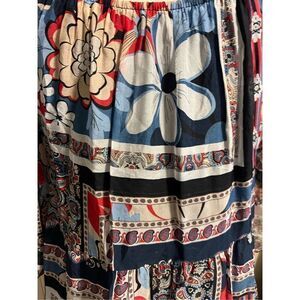 Lola Italy Silk On or off Shoulder Red White & Blue Patterned Tiered Dress Uniqu