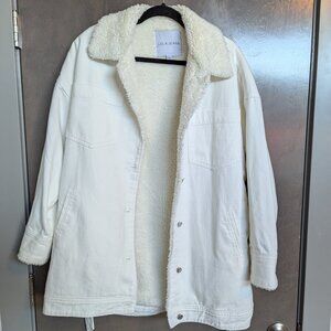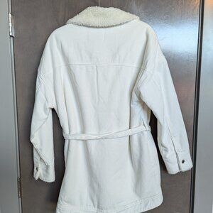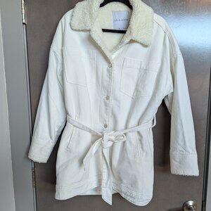 The Hayden is a slightly oversized ex-boyfriend jacket but belted. This version in Sherpa Ivory features sherpa lining for extra comfort and warmth.