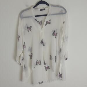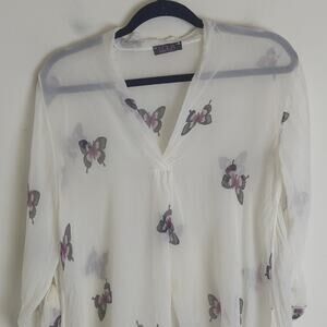 Lola Made in Italy White Butterfly Print Sheer Blouse Size Small