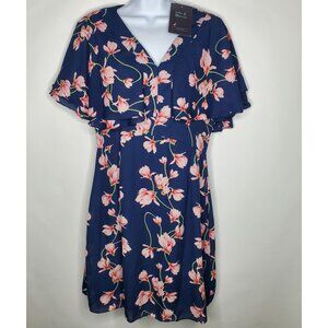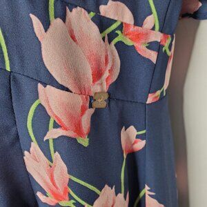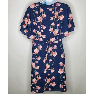 Lola & Maria Womens Blue Floral Chiffon Dress Size M Short Sleeve Ruffle Flowy