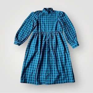Lola May Blue Gingham Smock Midi Dress Puff Sleeve Cottagecore UK8 / US4