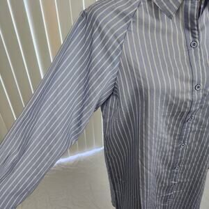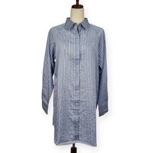 Lola May Shirt Dress Long Sleeve Button Front Pinstripe Blue White US Size 6 New