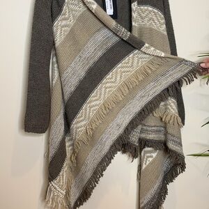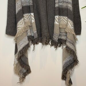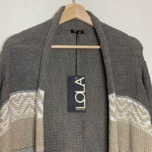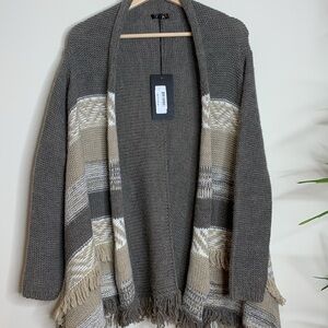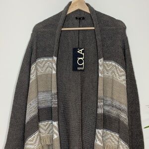Lola || NWT Gray Made in Italy Open Front Fringe Waterfall Knit Cardigan Sweater with long sleeves in size Small