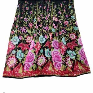 Lola P. Chiffon Shift Colorful Floral Black Dress Embellished Neck Pullover XL