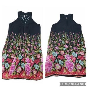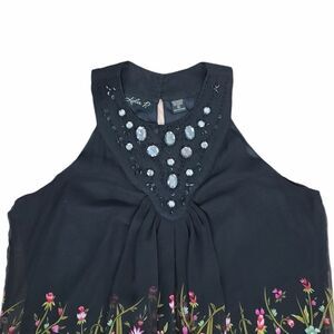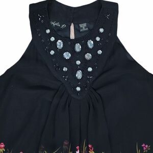 Lola P. Chiffon Shift Colorful Floral C Black Dress Embellished Neck Pullover XL