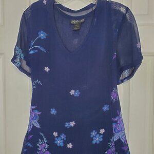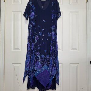 Lola P Floral Maxi Asymmetrical Handkerchief Flowy Dress Size Medium