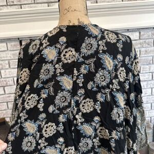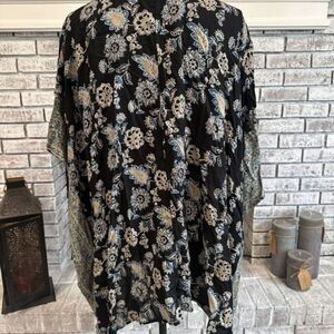 Lola P Women's Floral Print Short Sleeve Open Front Kimono Top Black Medium Boho