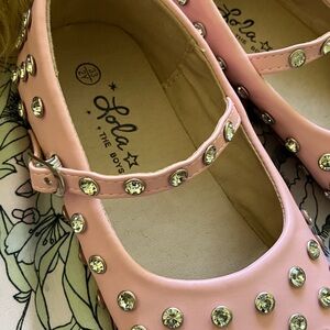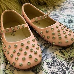 Charming pink dress shoes with sparkling studs. Ideal for stylish occasions.