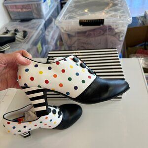 I have a thing for shoes and it's time to clear the closet. These are from Lola Ramona, a UK shoe maker and one of my favorites. These are European size 40. I wear a 9.5 in other shoes and these fit very well. Roughly 2.5 inch heel